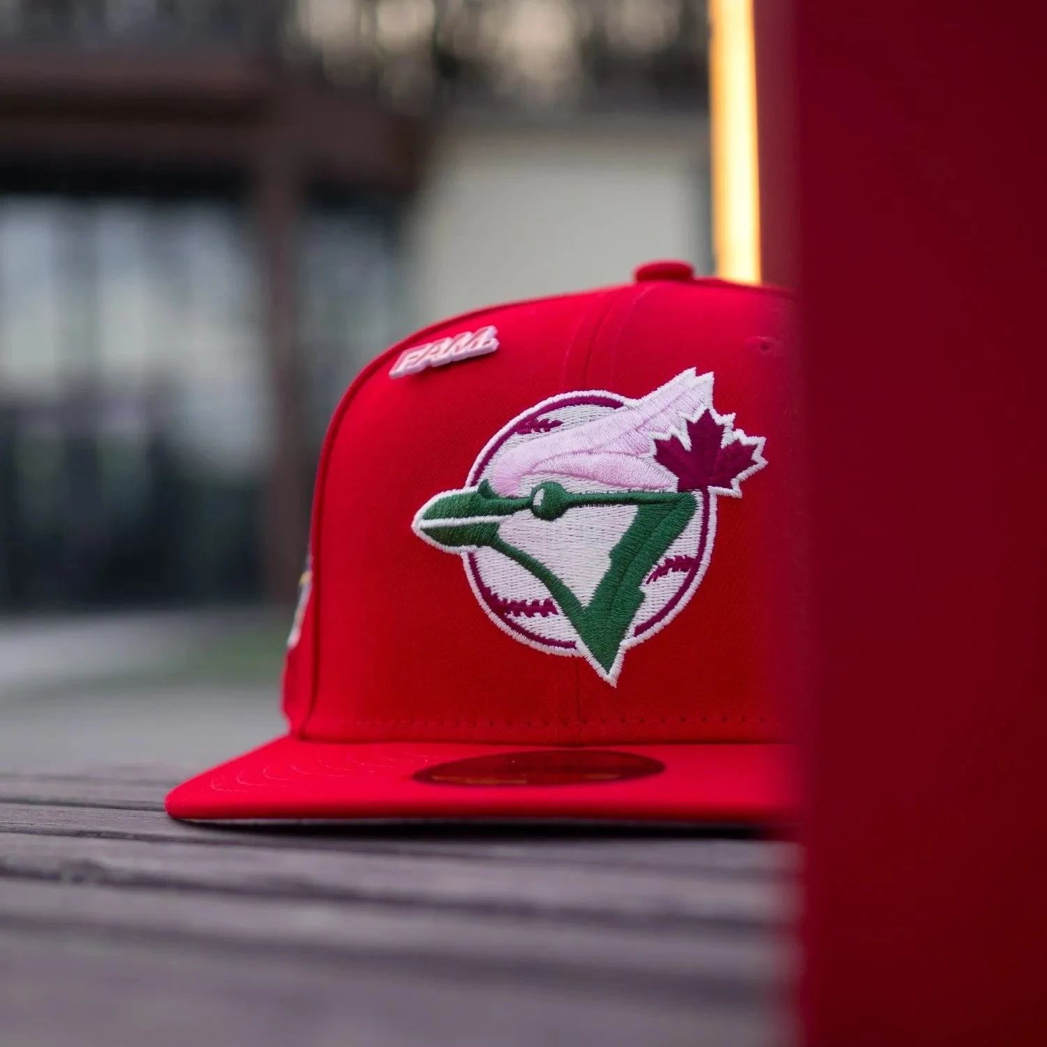 The 59FIFTY MLB Toronto Blue Jays fitted cap is a must-have for fans and collectors who love bold designs. Featuring a vibrant embroidered Blue Jays logo on the front, this cap stands out with its red visor, crown, and top button, creating a striking look. The pink undervisor adds a stylish contrast, while the flat Cooperstown Batterman logo at the rear enhances its vintage appeal. Designed with a black sweatband for comfort, this cap is made from 100% polyester for durability and structure. Made in China, and for a personalized fit, you can curve the visor.