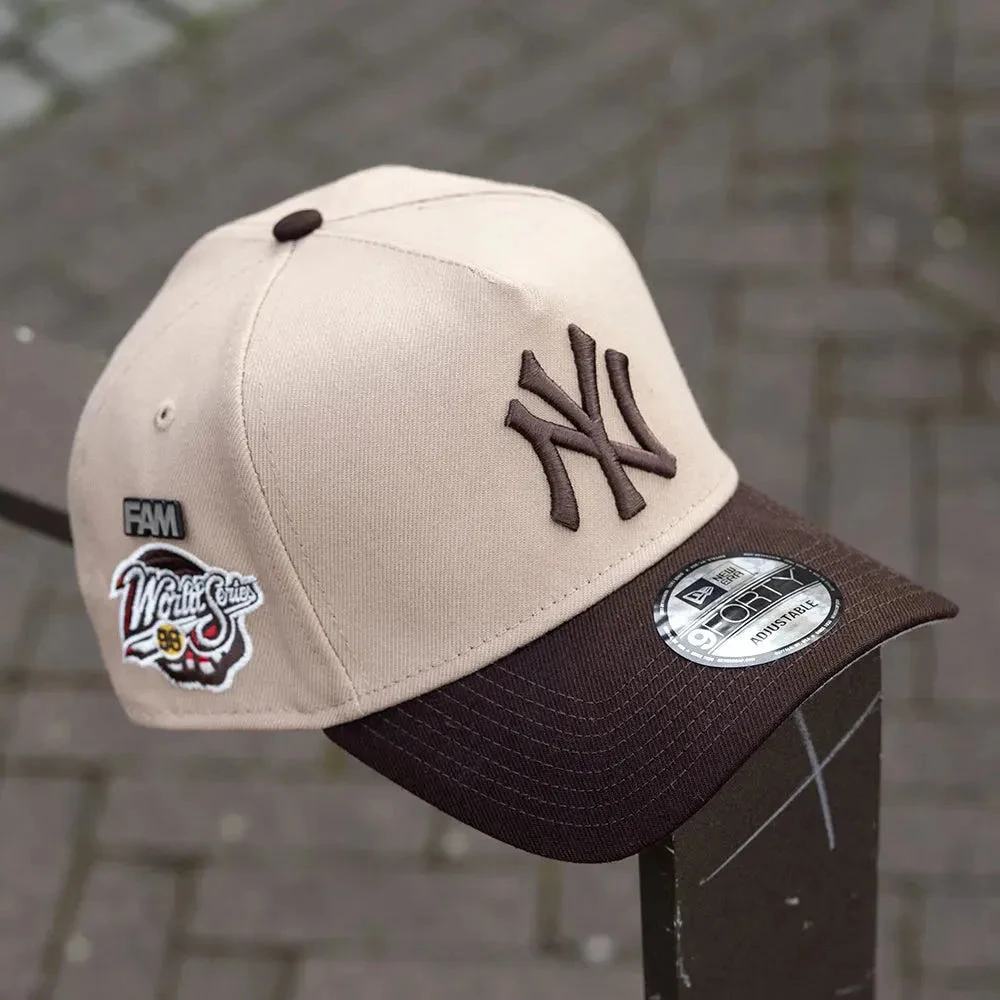 Update your style with the NEW ERA 9FORTY A-FRAME MLB New York Yankees World Series 1998 TWO TONE / GREY UV SNAPBACK. Featuring an embroidered logo on the front and a special side patch celebrating the Yankees, this hat captures both the 9FORTY and Trucker silhouettes. The raised logo and tonal flag add a touch of elegance, while the adjustable Snapback closure and gray undervisor make for a comfortable fit. Get yours today and receive a complimentary FAM Pin!