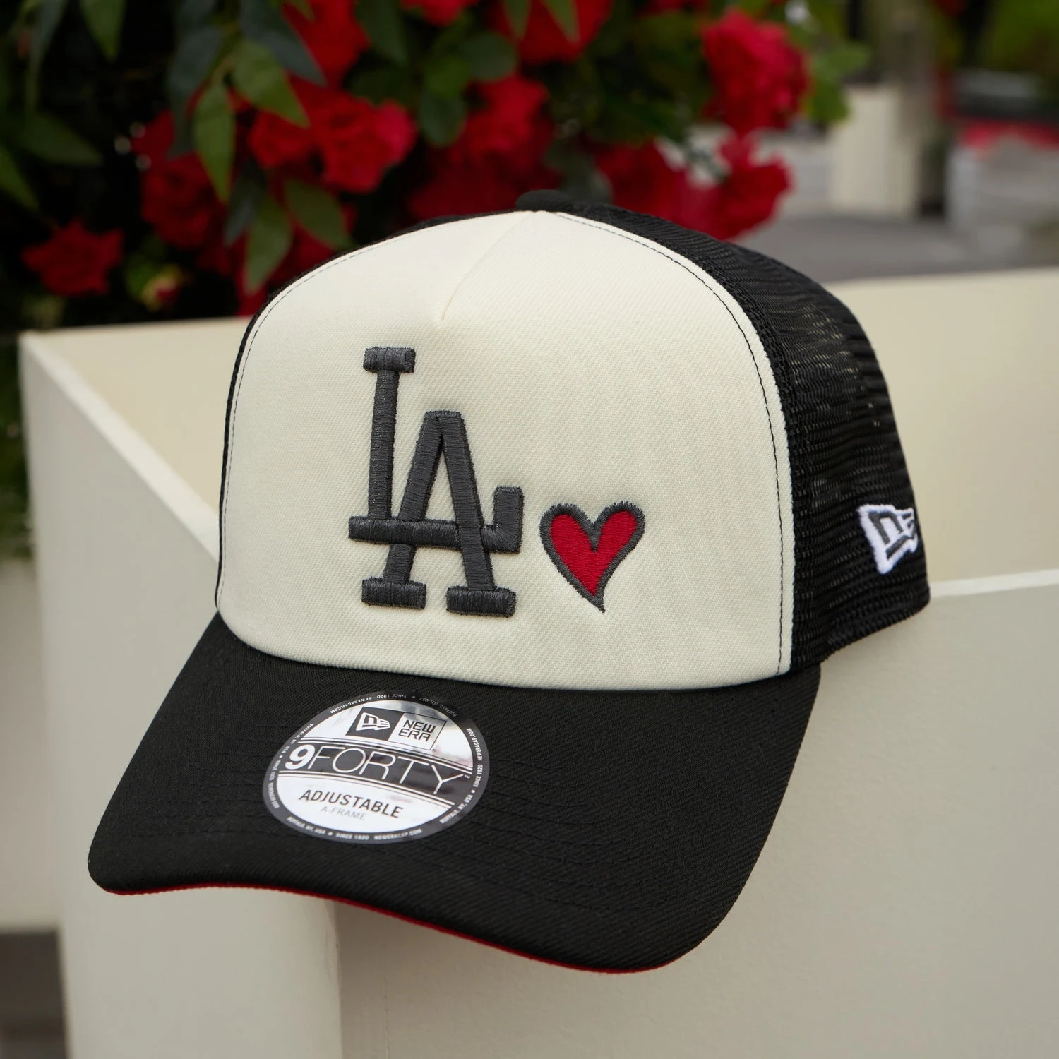 The 9FORTY A-Frame MLB Trucker LA Dodgers cap is the perfect blend of style and team spirit. Featuring a bold embroidered LA Dodgers logo at the front, this cap proudly displays your loyalty to the team. The red undervisor adds a vibrant contrast, while the 40th Anniversary side patch commemorates a significant milestone in Dodgers history. The black sweatband ensures comfort, and the adjustable snapback closure at the rear allows for a custom fit. Made from 100% polyester, this cap is durable and lightweight, making it an essential piece for any Dodgers fan.